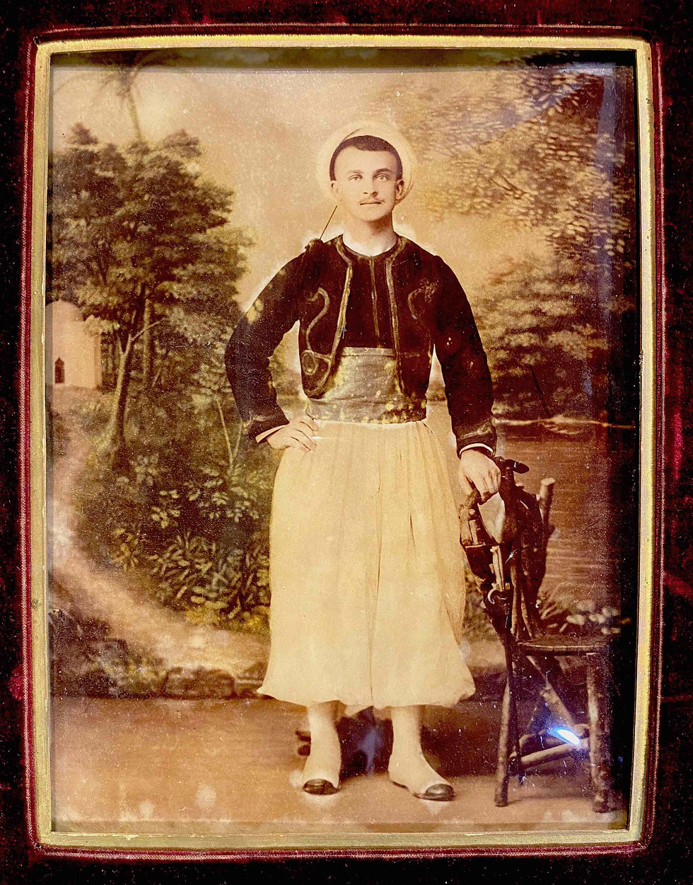 Crystoleum, "Portrait de Zouave" photographie peinte fixée sous verre c 1890
